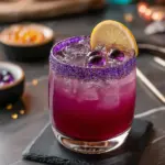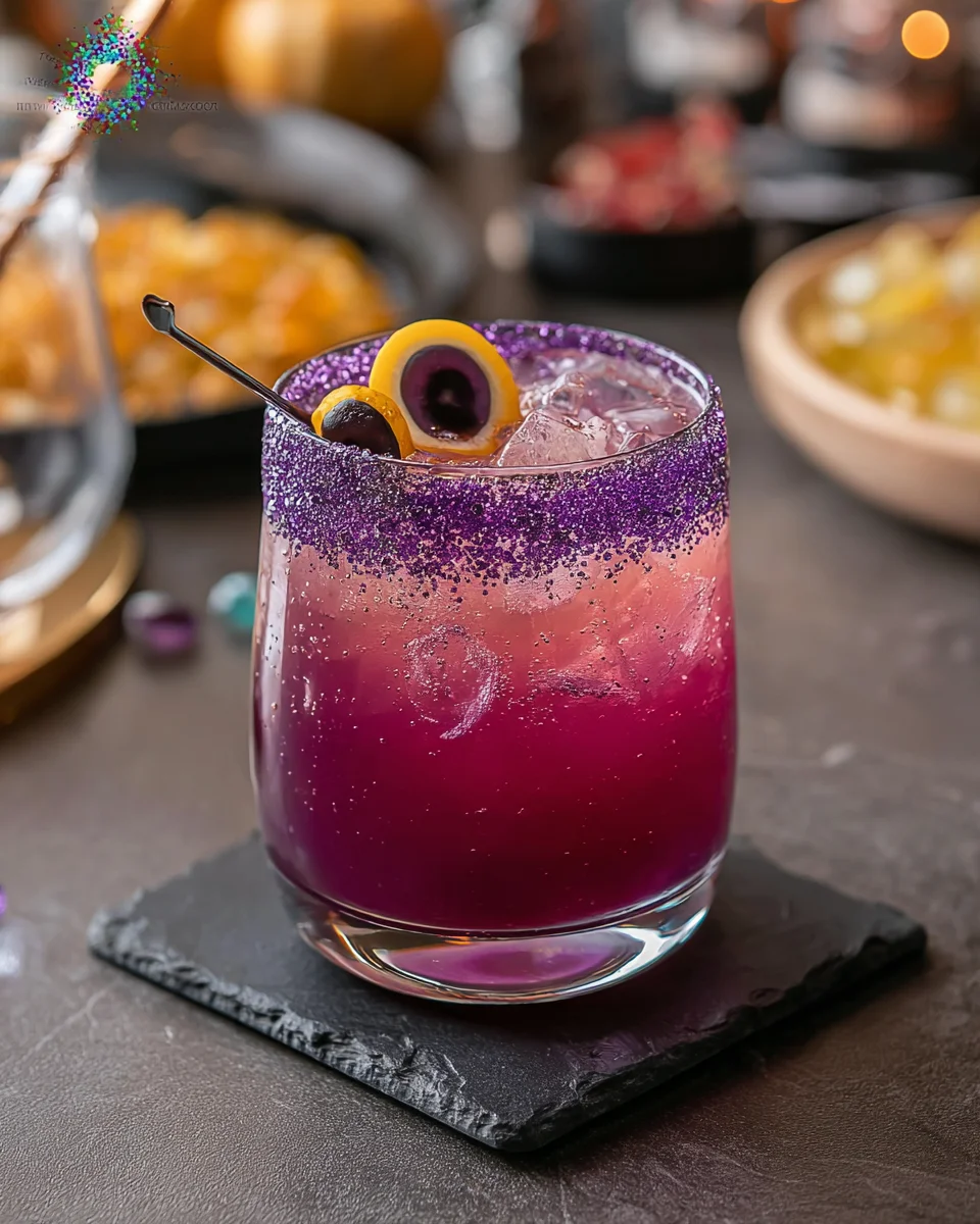 - Candy Corn Rim: For an added sweet treat, use candy corn to rim the glass instead of purple sugar.